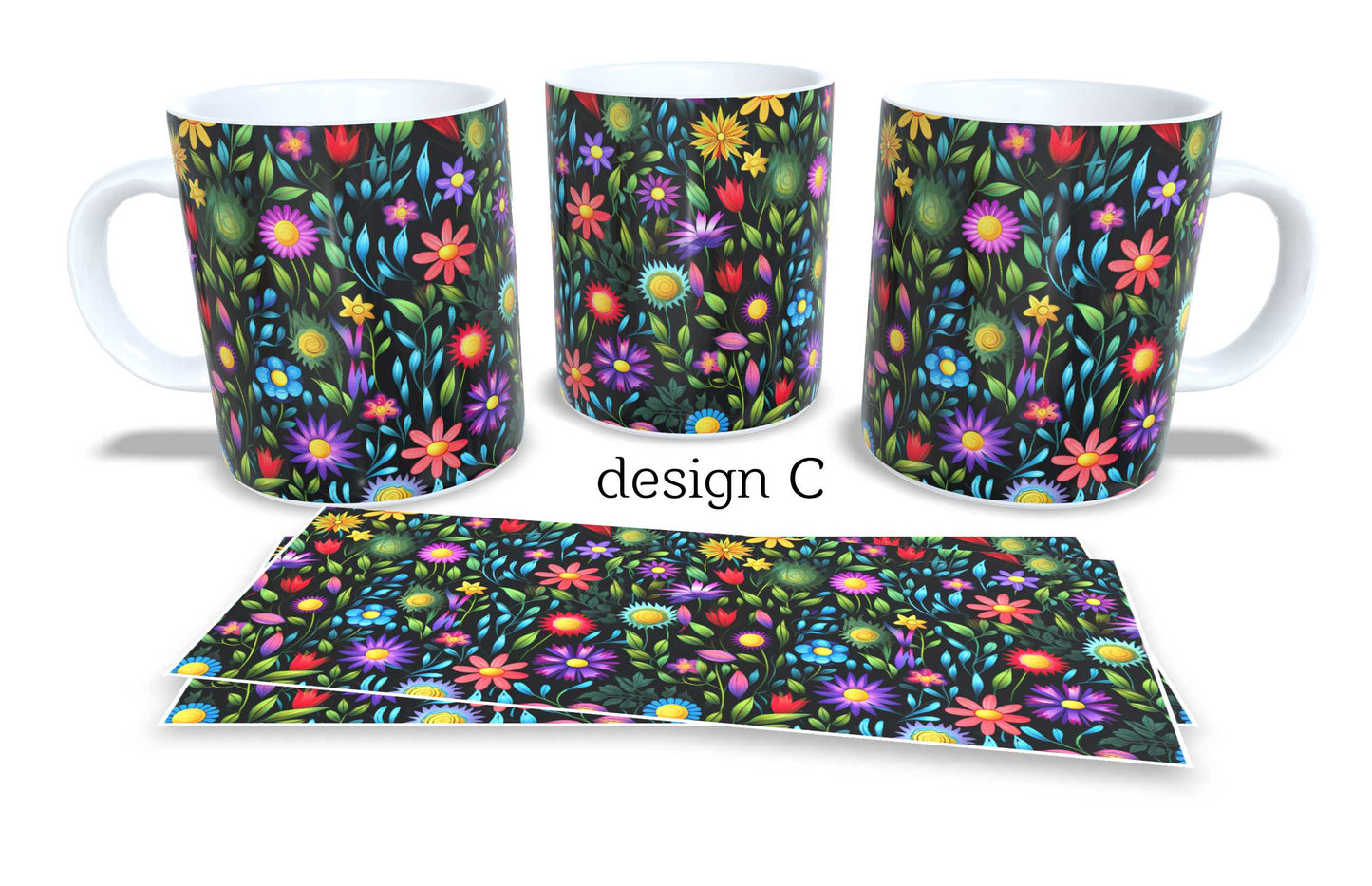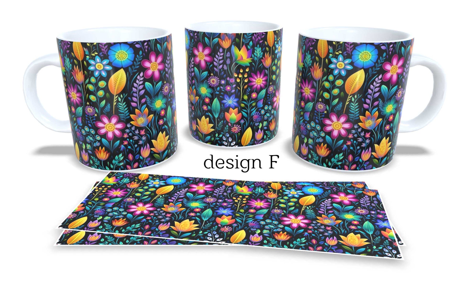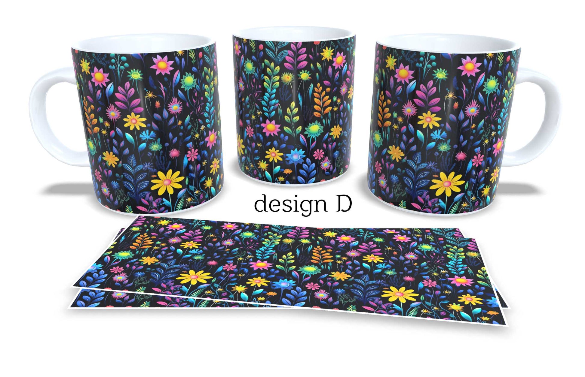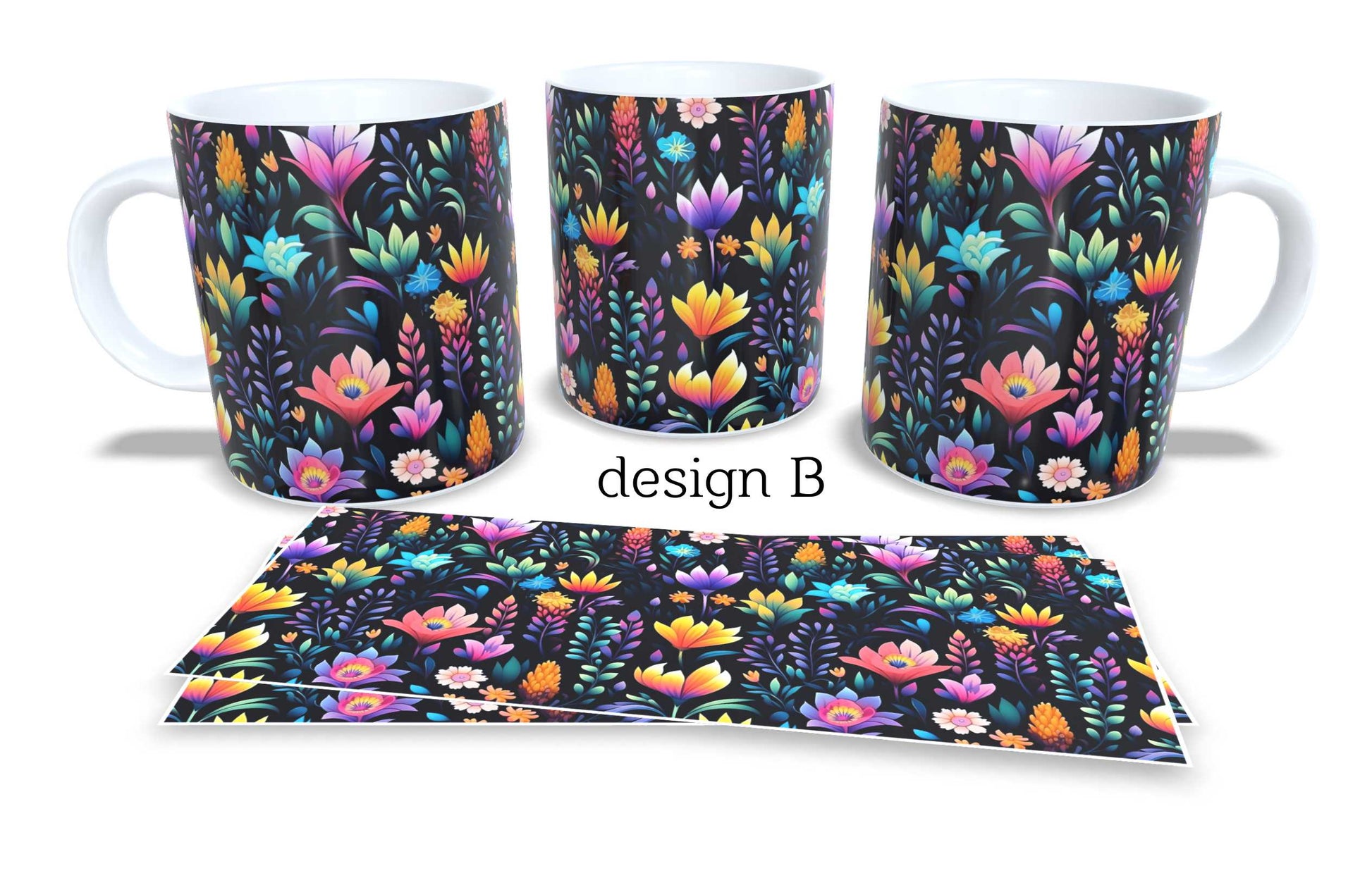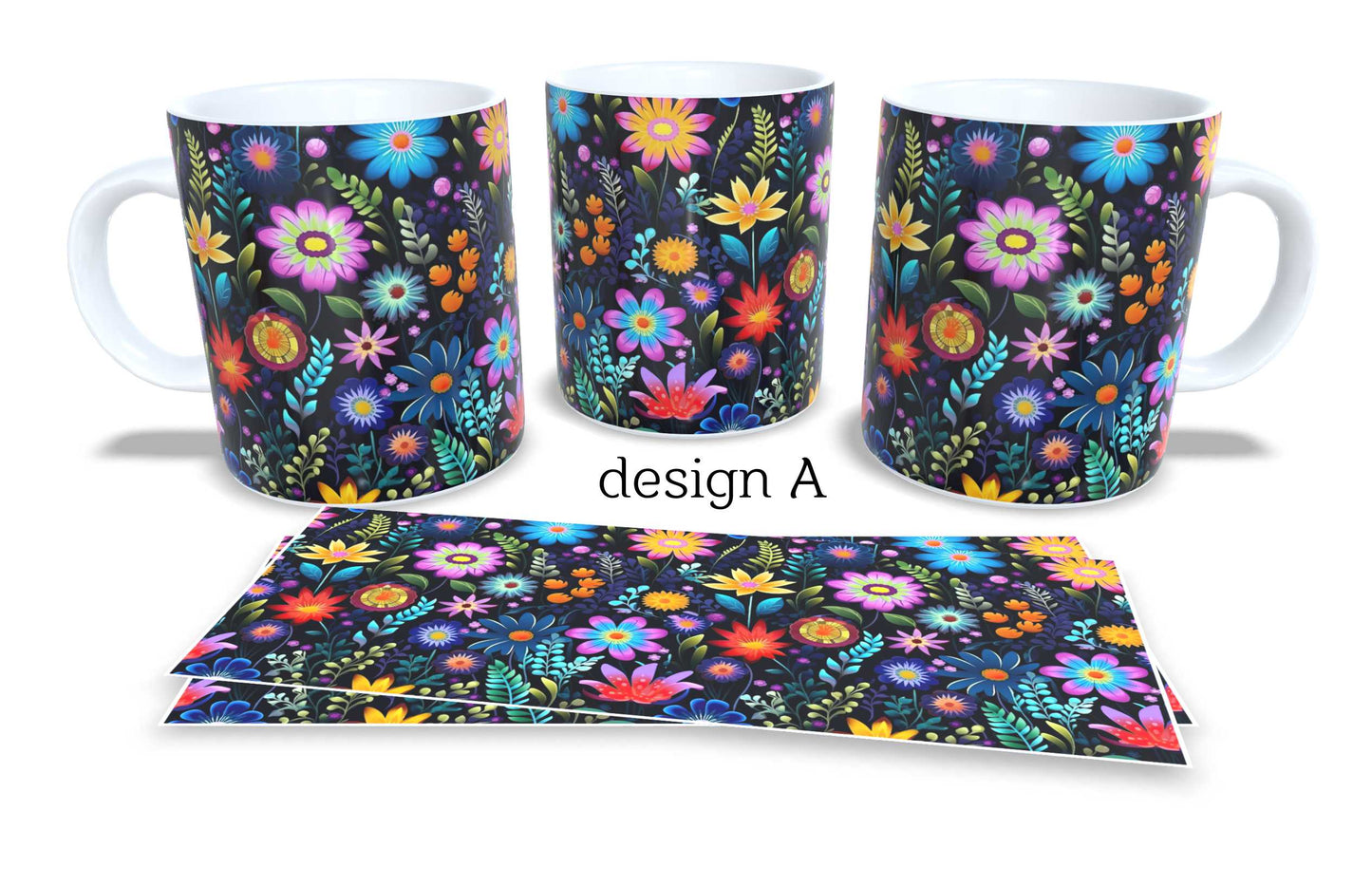 #242 - Set of 2 Coffee and Tea Mugs. Boho floral design. Full colour sublimated